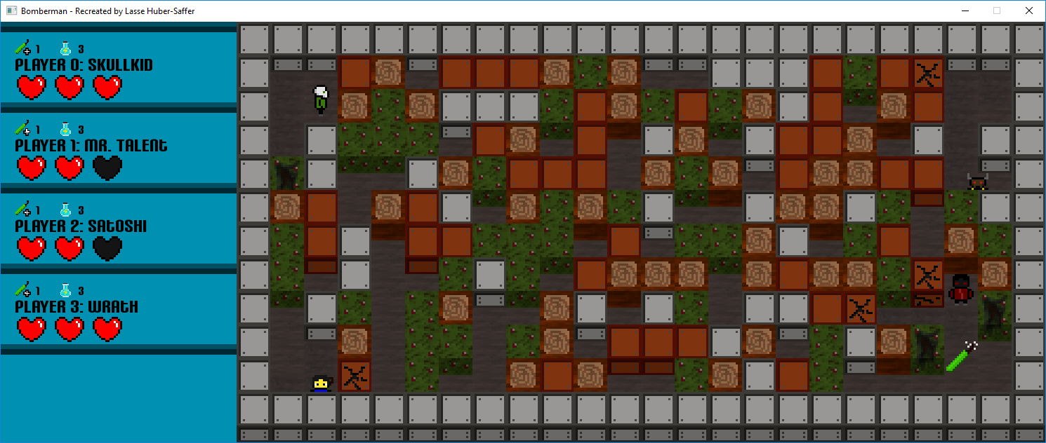 Dieses Spiel ist ein Klon des bekannten Spiels Bomberman mit anderen Charakteren und künstlicher Intelligenz.