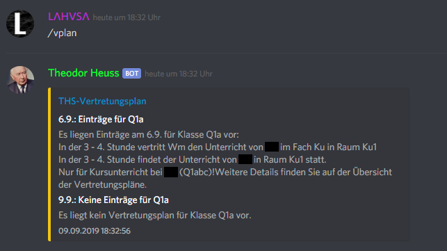 Als hilfreiches Feature auf dem Discord-Server meines Oberstufenprofils habe ich einen Discord-Bot entwickelt, der diverse schulische Informationen anzeigen kann.